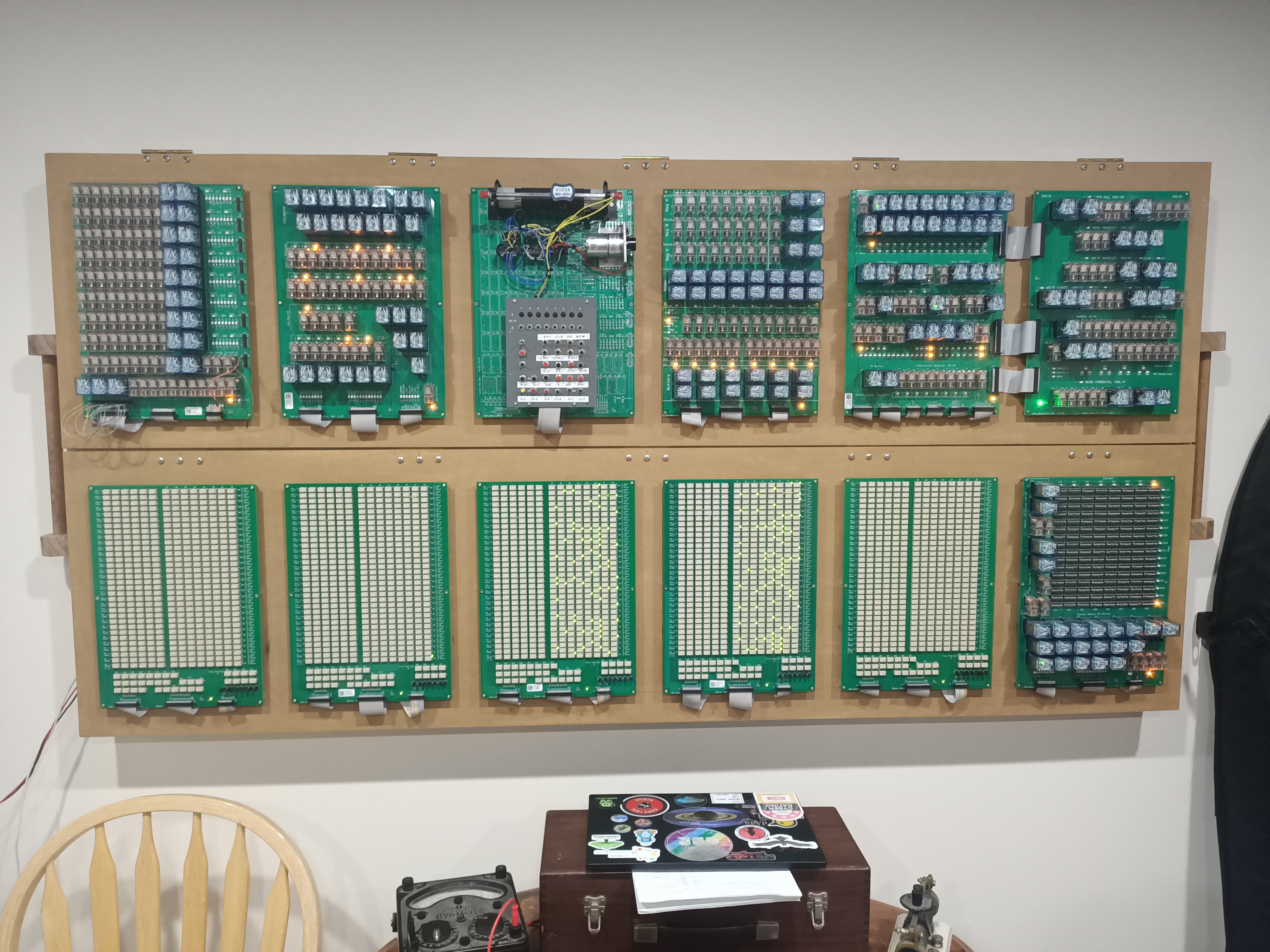 The purpose of the DAVIAC1 Relay Computer it simply to re-demonstrate the most basic principles of computing in a highly visual way in which every bit can be tracked continuously. To this end I have chosen large format relays with easily visible contacts inside clear transparent cases. The single pole SPDT (single pole double throw) examples have 12V coils and 240V, 10A contacts. These relatively large power relays provide not only the visual evidence of operation, but also a most satisfactory sound. I had a very clear idea of the sound I wanted, and am very happy with the result.